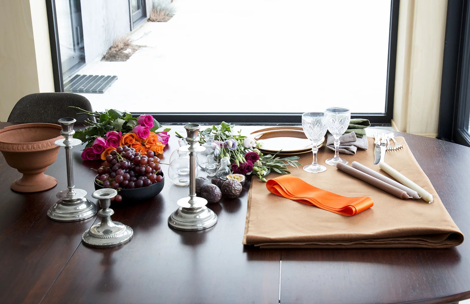 Throw the rose petals over the table as a final classical touch for this unforgettable meal.